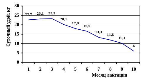 Как правило, наибольшая молочная продуктивность приходится на начало лактационного периода, а затем постепенно уменьшается и резко падает к концу лактации.