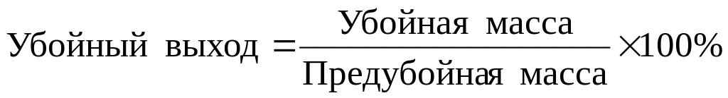 Убойный выход – это отношение убойной массы к предубойной живой массе, %: