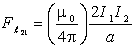 8. Два параллельных бесконечно длинных и тонких проводника с токами I1 и I2, расположенные на расстоянии а друг от друга, взаимодействуют с силой на единицу длины