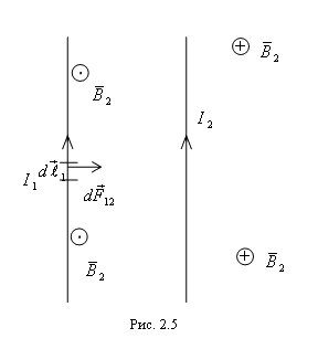 Пусть теперь второй проводник находится в поле, созданном первым проводником. Рассуждая по такой же схеме, получим: