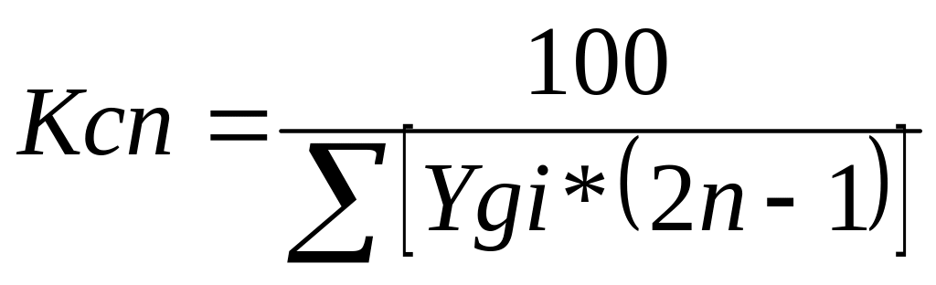 n – порядковый номер отдельных видов продукции по их удельному весу в ранжированном ряду.