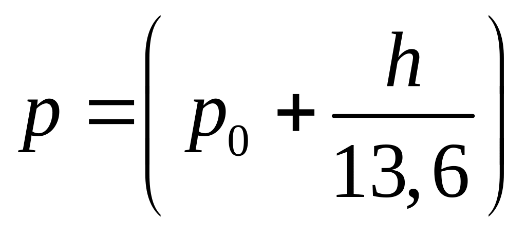 де р0 – атмосферний тиск (у мм рт. ст.), h – різниця рівнів води у циліндрі і в трубці (виміряна у мм).