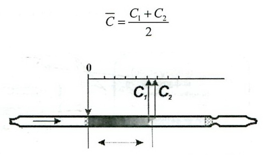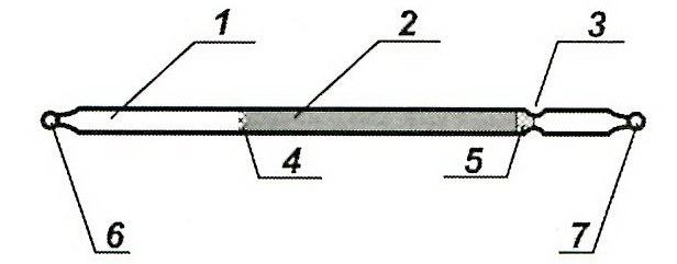Индикаторные трубки, входящие в состав мини–экспресс лаборатории «Пчелка-Р», являются индикаторными трубками колористического типа (рис.1). Принцип их действия основан на фильтрации загрязненного воздуха через наполнитель (2) индикаторной трубки (индикаторный порошок) при просасывании его с помощью насоса-пробоотборника типа НП-3М или ручного сильфонного аспиратора типа АМ-5М. При этом происходит поглощение определяемого компонента из воздуха и избирательная химическая реакция с нанесенным на наполнитель реагентом, приводящая к образованию окрашенных продуктов. Селективность контроля воздуха при определении паров ацетона достигается применением совместно с индикаторной трубкой фильтрующей трубки. При использовании колористической индикаторной трубки концентрацию определяют по длине прореагировавшего (изменившего окраску) слоя индикаторной массы 2, ограниченного началом шкалы и внешней границей окрашенного слоя (рис.1).