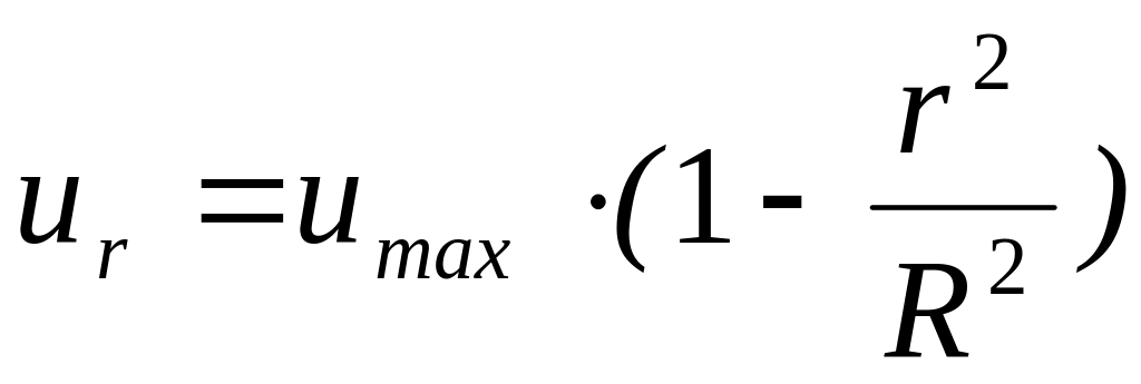 Интегрируя уравнение (4.5) с учетом граничного условия (ur = 0 при R = r) получаем параболический закон распределения скоростей (рис. 4.2) по сечению круглой трубы
