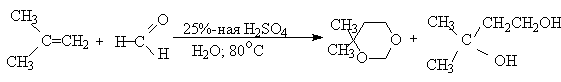 Соотношение 1,3-диола и 1,3-диоксана зависит от структуры алкена. Для алкенов с концевой двойной связью в продуктах преобладает 1,3-диоксан. Симметричные дизамещенные алкены образуют, в основном, 1,3-диол. Выходы диолов в этой реакции невелики и ею чаще пользуются для получения 1,3-диоксанов.