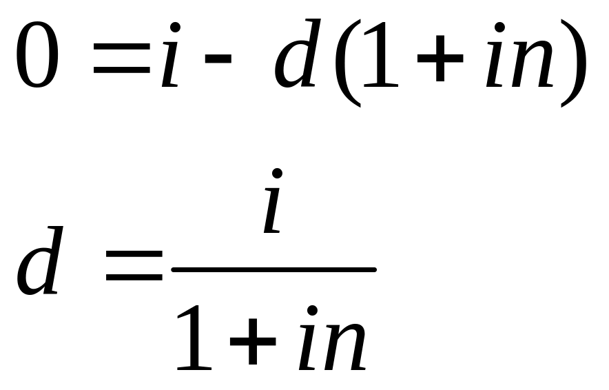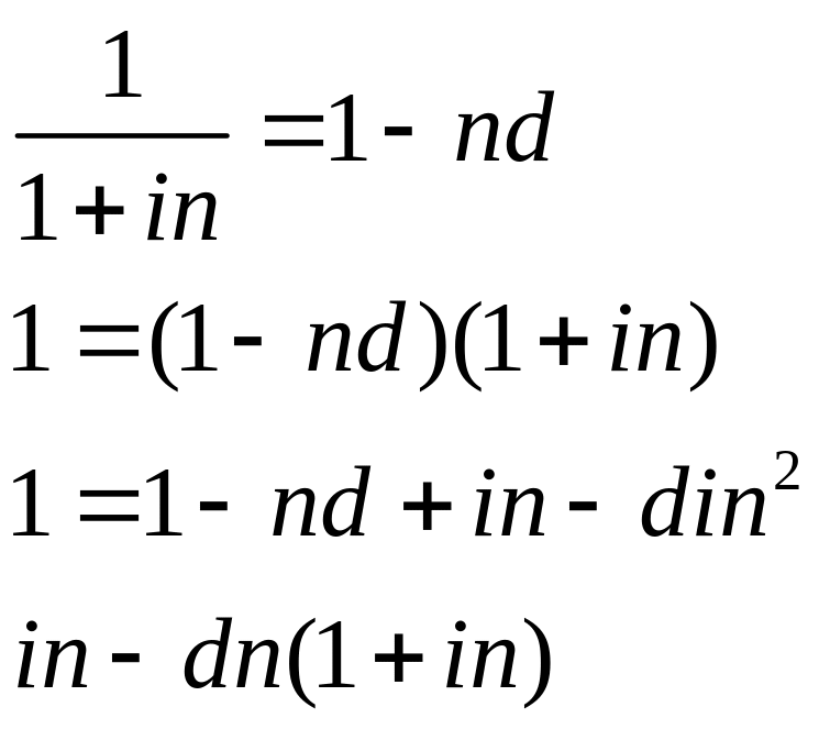 Ставки, применяемые при обычном и банковском учете, решают практически одни и те же задачи – определение величины PV по заданной FV. На практике возникает необходимость сравнить эффективность сделок со ставками i и d. Для этого необходимо установить связь между этими ставками, выразив одну через другую