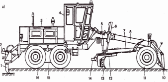 Автогрейдер имеет оригинальную длинно- базовую конструктивную схему, отвечающую как нельзя лучше своему прямому назначению: быть способным качественно планировать и профилировать поверхность грунта за счет расположения рабочего органа (отвала) между разнесенными на значительное расстояние ходовыми колесами. Эта трехосная на пневматических шинах машина, снабженная собственной силовой установкой (дизельным двигателем) для привода ходовой части, управляется одним машинистом. Состоит автогрейдер из следующих основных частей: