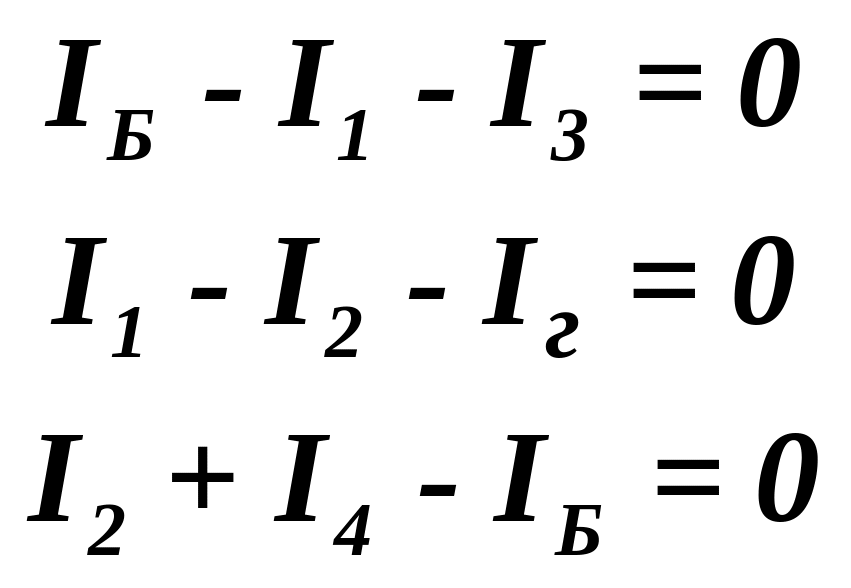 Воспользовавшись правилами Кирхгофа, можно получить шесть независимых уравнений для мостика Уитстона. По первому правилу Кирхгофа для узлов А, В и С: