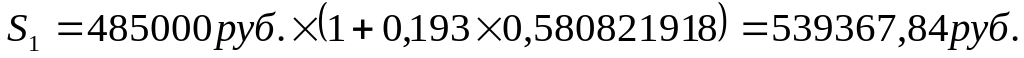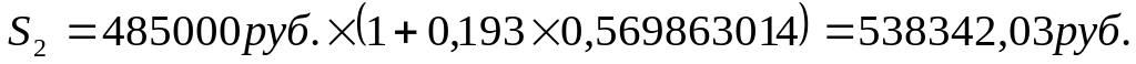 б) по смешанной схеме, когда используется схема сложных процентов для целого числа лет и схема простых процентов – для дробной части года: