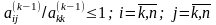 Выбор главного элемента по столбцу. В этом случае ограничение роста элементов матрицы Ak на k–м шаге гауссова исключения достигается перестановкой строк таким образом, чтобы гарантировать неравенство