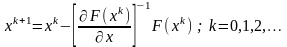и итерационное правило Ньютона решения системы нелинейных алгебраических уравнений запишется как