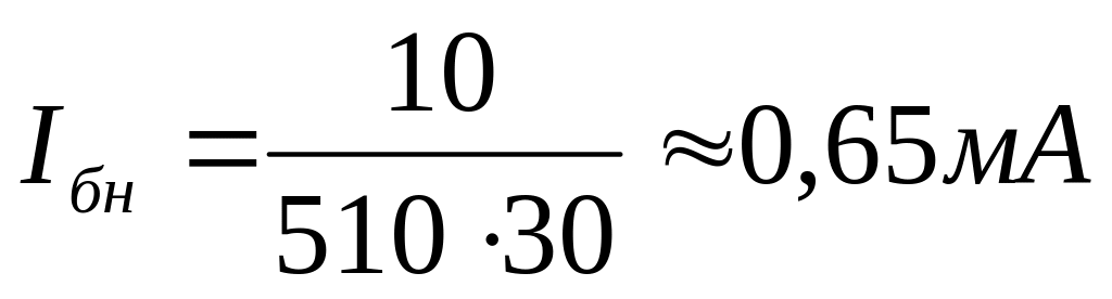 Установлений струм бази Iб повмнен бути в S разів більшим за струм бази Iбн на границі насичення. Нехтуючи вхідним опором транзистора в режимі насичення маємо:
