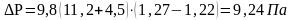 3829,1 + 1392,4 + 4687,4 + 205,07 = 10113,97Па.