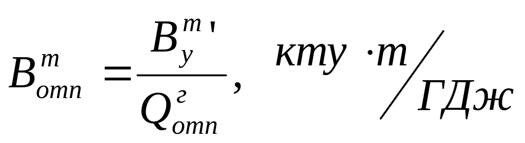 Удельный расход условного топлива на отпуск теплоты составляет: