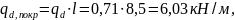 Нагрузка на 1 м длины балки складывается из нагрузки от покрытия и собственного веса балки.