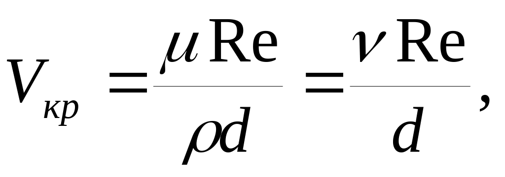 О. Рейнольдс на основании результатов опытов и использования размерностей физических величин установил, что величина критической скорости прямо пропорциональна динамической вязкости µ и обратно пропорциональна плотности жидкости р и диаметру трубы d