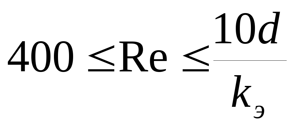 В области переходного сопротивления , числа Рейнольдса находятся в пределах