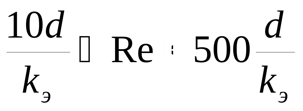 В области гладкого сопротивления (гидравлически гладкие трубы) δВ > кэ и λ = f(Re), числа Рейнольдса лежат в следующих пределах: