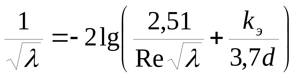 Для всех областей турбулентного движения для определения λизвестны универсальные формулы Колбрука и А. Альтшуля.