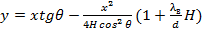 Уравнение теоретической траектории сплошной незатопленной струи выводится из предположения, что все ее частицы движутся совершенно одинаково подобно твердому телу, брошенному под углом к горизонту. Уравнение траектории струи, на которую действуют силы инерции, силы тяжести, силы сопротивления воздуха, получаем в общем виде: