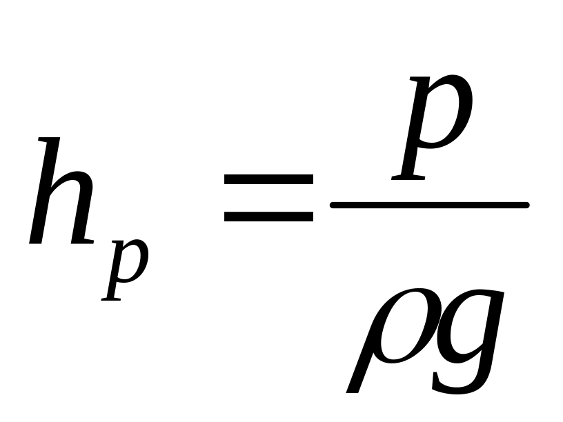 65. Пьезометрический напор, соответствующий избыточному давлению в точке, расположенной на глубине h выражается зависимостью: