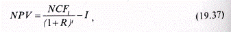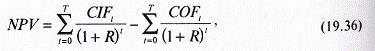 где CIFt — поступления денежных средств на t-мшаге расчета; COFt —выплаты денежных средств на t-м шаге расчета; Т — продолжительность инвестиционного периода; R — ставка доходности. Если инвестиции в проект производятся единовременно, то выражение (19.36) может быть представлено в виде: