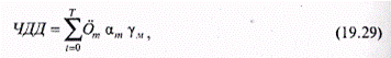 где Фт — эффект на т шаге; αm — коэффициент дисконтирования; γм — коэффициент распределения, а сумма распространяется на все шаги в расчетном периоде. Если в течение расчетного периода не происходит инфляционного изменения цен или расчет производится в базовых ценах, то ЧДД для постоянной нормы дисконта вычисляет по формуле: