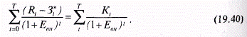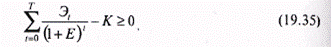 где t—номер шага, t = 0, 1, 2, ...Т. Чем выше норма или ставка доходности (дисконта) Е, тем более жестким условиям должен удовлетворять проект, чтобы быть действительно эффективным. Если снять ограничение, согласно которому инвестиции происходят только в нулевой момент времени, приняв поток постумерандо, и считать, что в Эtкапитальные вложения не входят (З*), то формула (19.34) допускает следующее обобщение: проект выгоден, если
