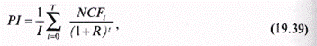 При расчете ИД и ИДД могут учитываться либо все капитальные вложения за расчетный период, включая вложения в замещение выбывающих основных фондов, либо только первоначальные капитальные вложения, осуществляемые до ввода предприятия в эксплуатацию. При этом соответствующие показатели будут иметь различные значения. Как видно, индекс доходности ИД тесно связан с ЧДД. Он строится из тех же элементов. Если ЧДД положителен, то ИД > 1 и наоборот. Если ИД > 1, проект эффективен, если ИД < 1 — неэффективен. Существует и в зарубежной практике соответствующий показательPtofitabilityIndex (PI), рассматриваемый по формуле: