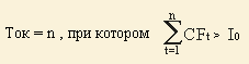 Ток (PP) - срок окупаемости инвестиций; n - число периодов; CFt - приток денежных средств в период t; Io - величина исходных инвестиций в нулевой период.