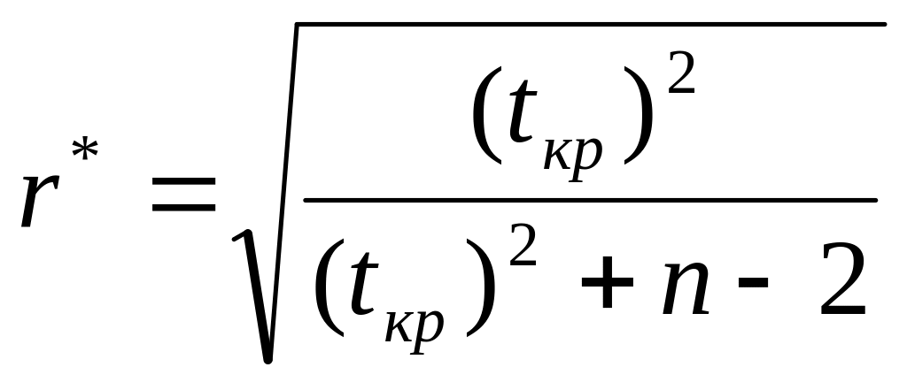 где tкр — значение t-распределения Стьюдента для заданного α (берется 0,05) и для (п - 2) степеней свободы.