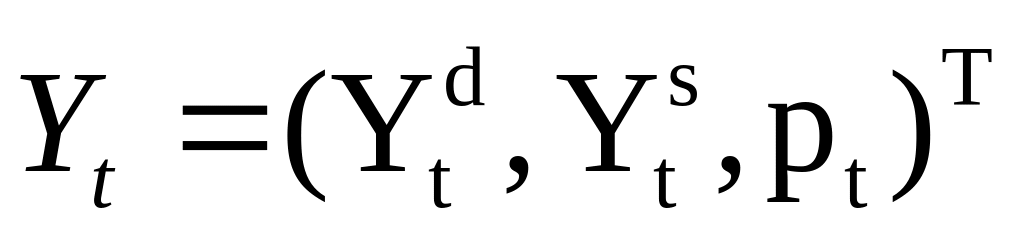 Модель равновесного рынка предназначена для оценки (или прогнозирования) текущих значений спроса, предложения и равновесной цены, поэтому элементы вектора эндогенных переменных следующие: