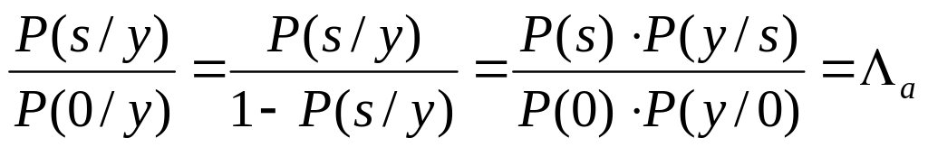 называют отношением правдоподобия, которая не зависит от априорных вероятностей P(s) и P(0), часто не известных на практике.