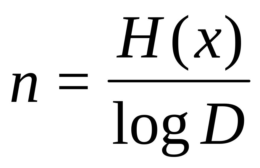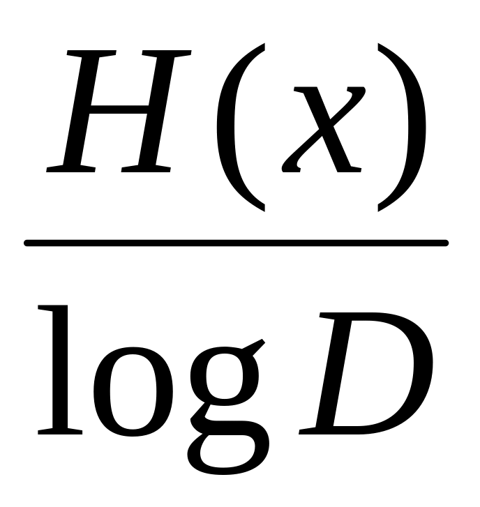 Мы уже знаем, что энтропия Н(х) представляет собой среднее количество информации, необходимое для однозначного определения сообщения из этого ансамбля. Знаем также, что символы несут максимальное количество информации, равное log D, когда они равновероятны. Поэтому можно утверждать, что