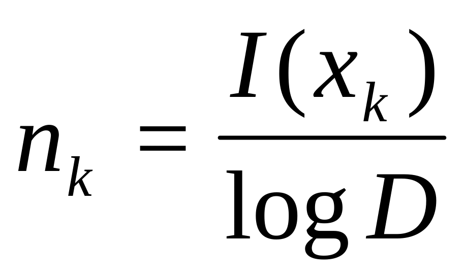 где nk – число символов в кодовом обозначении x k-го сообщения.