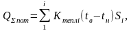 Суммарные тепловые потери через ограждения (стены, потолок, оконные проемы и т.п.) определяются из соотношения: