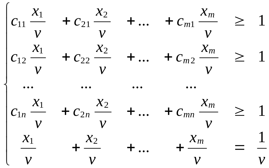 Предположим, что в обеих задачах 0. Разделим все ограничения в задачах на . Получим следующие задачи.