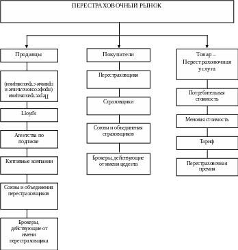 Перестраховочный рынок — это совокупность экономических отношений, регулируемых, в основном, обычаями делового оборота, главными участниками которого являются, с одной стороны, страховые организации, имеющие потребность в оказании специфической услуги – «перестраховочная защита», и, с другой стороны, страховые организации и специализированные перестраховочные общества, предлагающие данные услуги за плату и имеющие лицензию на осуществление этого вида деятельности.
