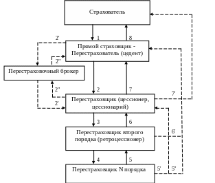 Заключив договор перестрахования, цессионер, принимая во внимание различные факторы (прежде всего, финансовые), решает вопрос о ретроцессии и, в случае положительного решения, заключает договор ретроцессии (3). Ретроцессионер также может принять решение о последующей передаче риска (4). Редко когда количество ретроцессионеров доходит до большого числа, обычно оно не превышает 4-5, что связано с недопущением больших временных разрывов при обслуживании договора.