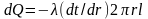 Для нахождения количества теплоты, проходящего через цилиндрическую стенку поверхность площадью F в единицу времени, можно воспользоваться законом Фурье: