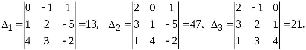 Так как Δ отличен от нуля, то система совместна, тогда решения системы: