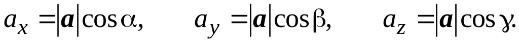 Определение 2.11. Обозначим , и – углы наклона вектора а к координатным осям Ох, Оу и Оz, соответственно. Три числа cos, cos и cos называются направляющими косинусами вектора а.