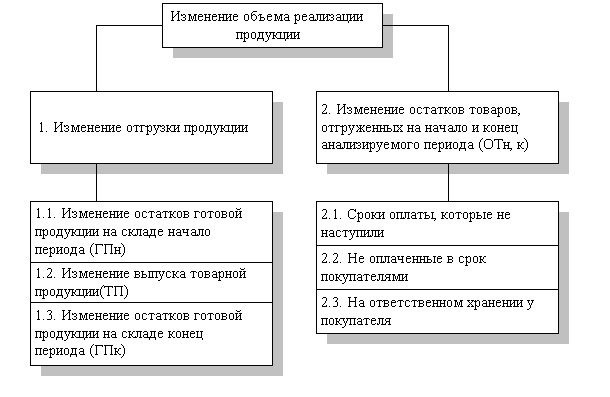 где РП - объем реализованной продукции; ГПзап.I, ГПзап.II - запасы готовой продукции на начало и конец периода соответственно; ВП - объем выпуска продукции за период.