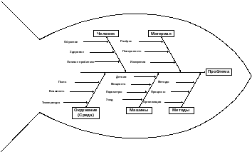 При этом методе возможные причины дифференцированно разделяются по своему влиянию на 5 основных причин: человек, машина, методы, материал, окружающая среда. Каждая из этих пяти основных причин может быть в свою очередь разделена на более подробные причины, которые соответственно могут разбиваться на еще более мелкие (см. схему 2).