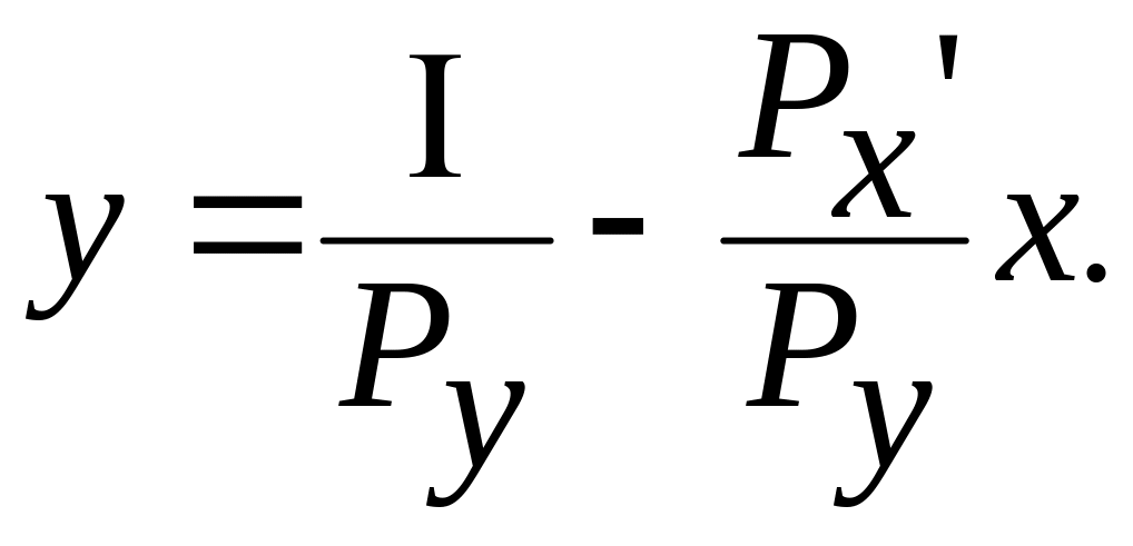 Рассмотрим ситуацию, когда цена только одного товара Х уменьшится с PX до PX’ при этом цена товара Y и доход потребителя останутся неизменными тогда новое бюджетное ограничение будет иметь вид: