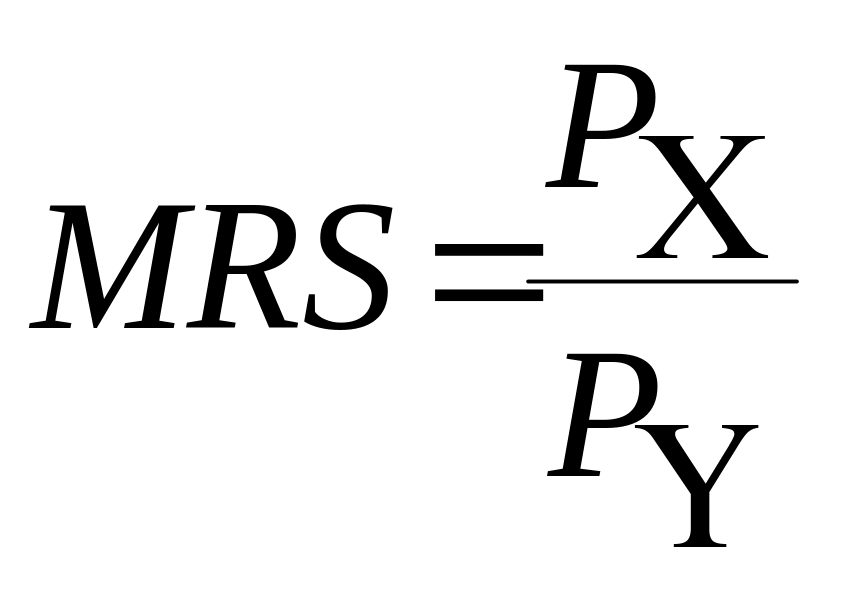 Так как наклон кривой безразличия отражает предельную норму замещения (MRS), а наклон бюджетной линии равен PX/PY, оптимальное, или равновесное, положение достигается при условии, что
