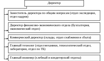 Организационная структура управления предприятием отражает состав и подчиненность линейных и функциональных звеньев управления, структура управления хлебозавода имеет линейно-функциональный вид.