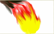 Далее нарисуем как огонь уже сжог весь цветок, и идет дым. Так же используя те же инструменты, которыми рисовали огонь. Для этого закрасим цветок желтым и красным и размоем. (Рис. 27)