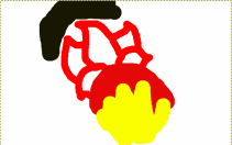 На втором слое нарисуем как начинает гореть цветок, для этого воспользуемся инструменто карандаш. Для начала взяв карандаш нарисуем область где будет начинать разгораться огонь, так же не забываем про смену цветов, для нарисования огня нам потребуется желтый и красный. Что бы изменить цвета воспользуемся диалоговым окном «Цвет»(Рис. 25)