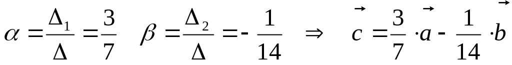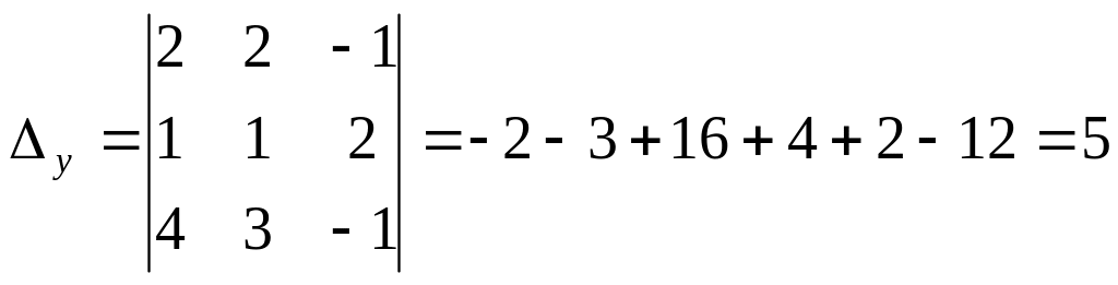 Находим . Для этого второй столбец в основном определителе меняем на столбец правых частей: